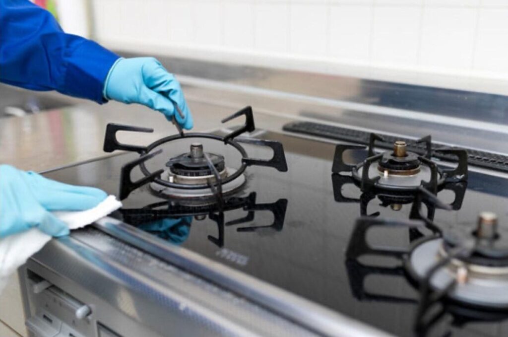 コンロの焦げ付きやシンク・蛇口の水アカなどの頑固な汚れも丁寧に除去。油汚れをきれいにしていきます。